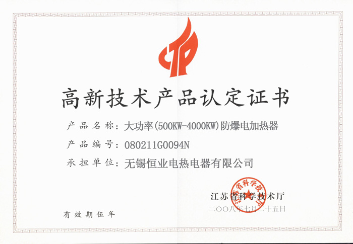 防爆電加熱器獲高新技術(shù)產(chǎn)品